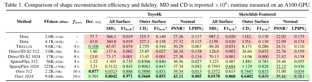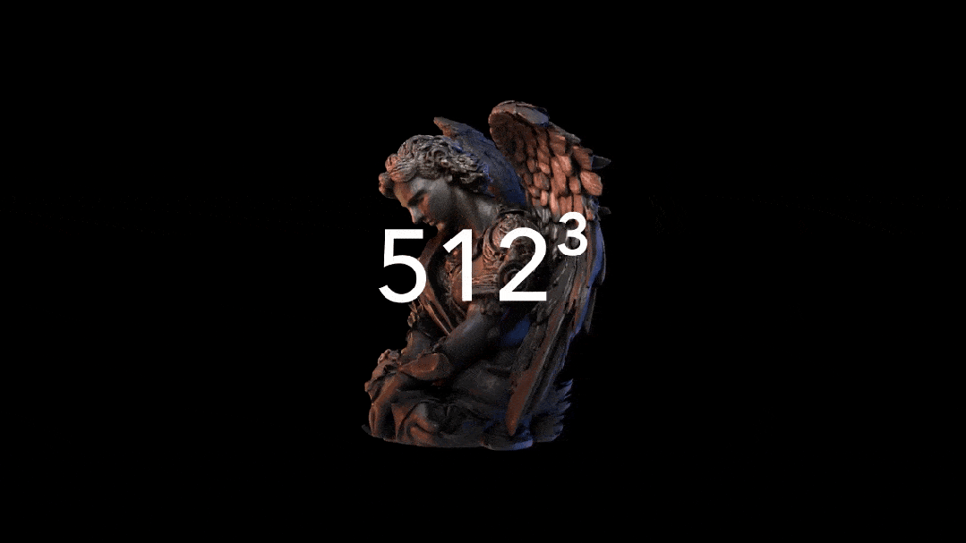 **(1)速度:**在 H100 显卡上,生成 512³ 分辨率的模型仅需 3 秒;1024³ 分辨率约 17 秒。这种近乎实时的反馈,对于设计师来说是革命性的。
