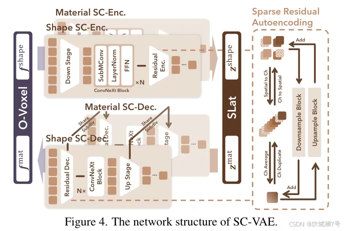 TRELLIS.2 使用了 SC-VAE(稀疏压缩变分自编码器)。这是一种极致的压缩技术,实现了 16 倍的空间压缩率。