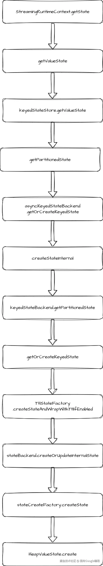 KeyedState 是通过调用 StreamingRuntimeContext.getState 方法获取的。我们先来看完整的调用流程。