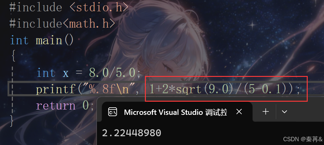对比两张图片我们不难发现:整数值要用%d输出;而浮点数要用%f输出。而f前面的数字决定了结果保留几位小数。