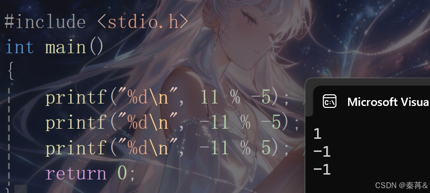 负数求模的规则是,结果的正负号由第⼀个运算数的正负号决定