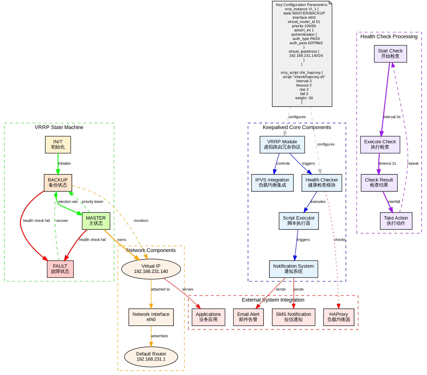 Keepalive 提供了负载平衡和高可用性的框架。Keepalive 实现了一组健康检查器,根据负载平衡服务器池的健康状况动态自适应地维护和管理负载平衡服务器池。