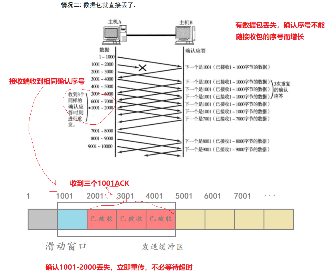 本质是根据收到相同的确认序号判断有多个后续的包递达,但最左端的包未递达