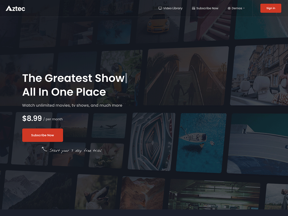 Aztec 是一个易于使用的视频和音频流媒体 WordPress 主题。Aztec 主题拥有电子商务会员平台、视频播放器和拖放页面构建器等高级功能。