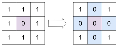 输入:matrix = [[1,1,1],[1,0,1],[1,1,1]]