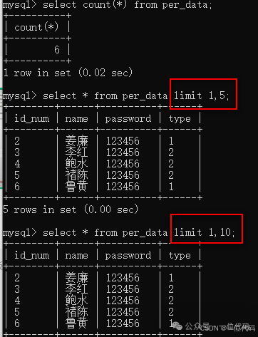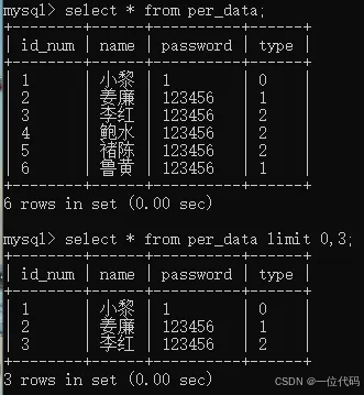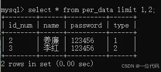命令:select * from per_data limit 1,2;