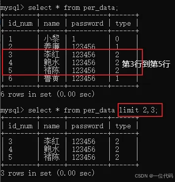 命令:select * from per_data limit 2,3;