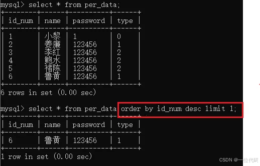 命令:select * from per_data order by id_num desc limit 1;