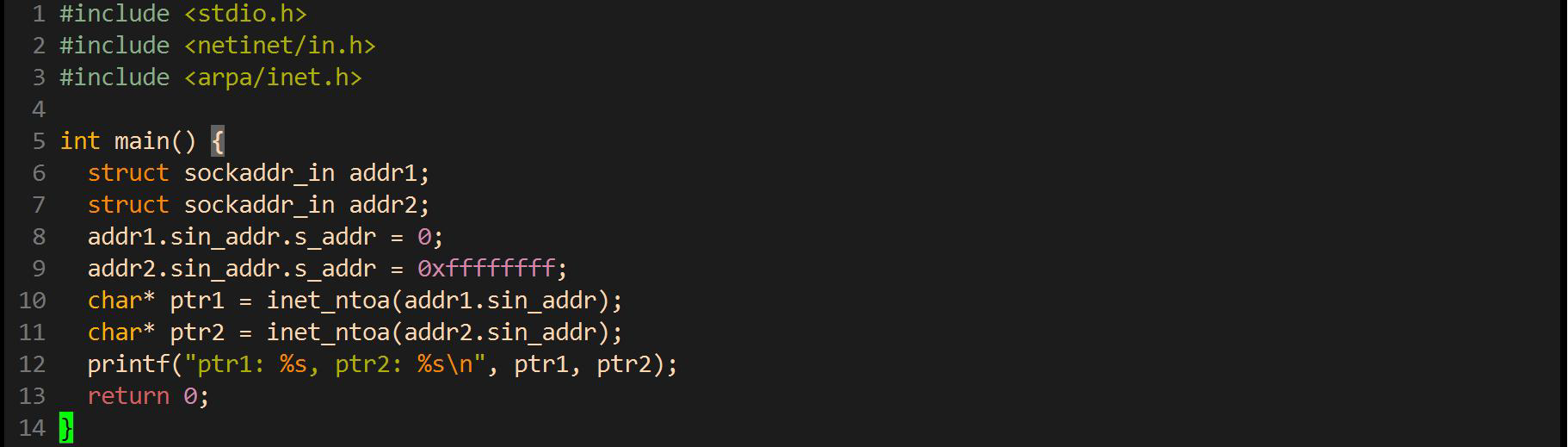 | inet_ntoa() | IPv4 | 否 | 否 | ★☆☆☆☆(线程不安全) |