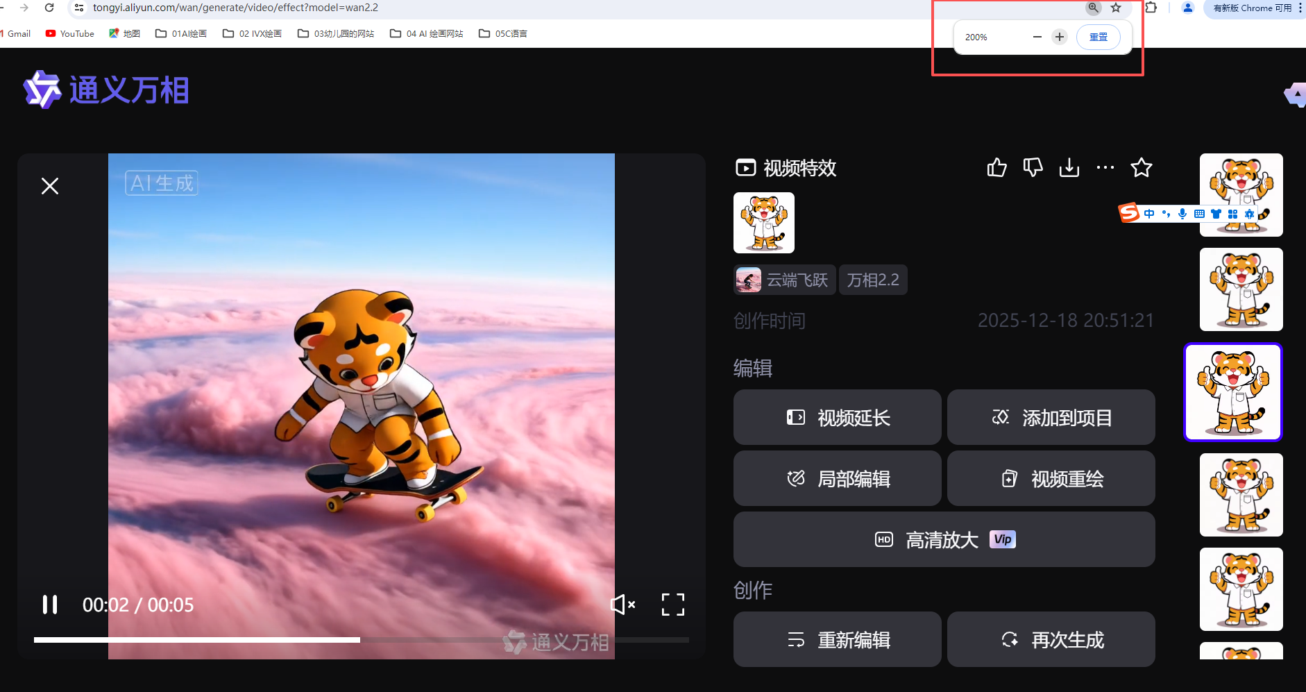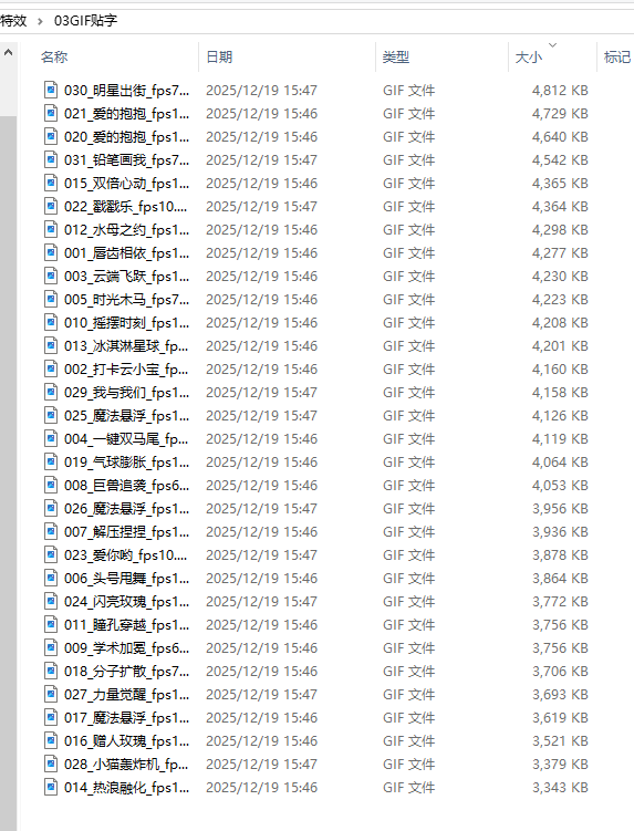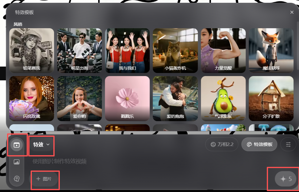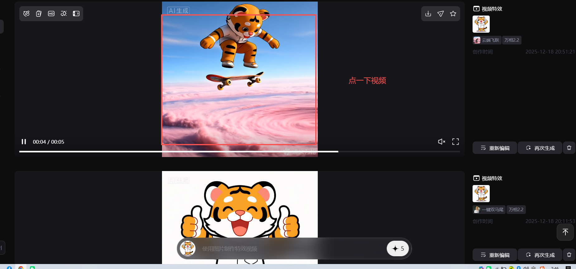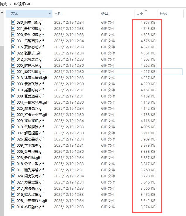 全部生成后,我希望下载这些5秒特效视频mp4,并在特效右上角写上特效名称,最后转成gif(因为没有声音,直接转动图即可)