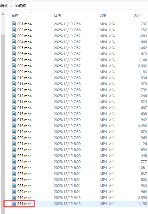 因为有部分没有生成成功的视频,所以29和33数量不等