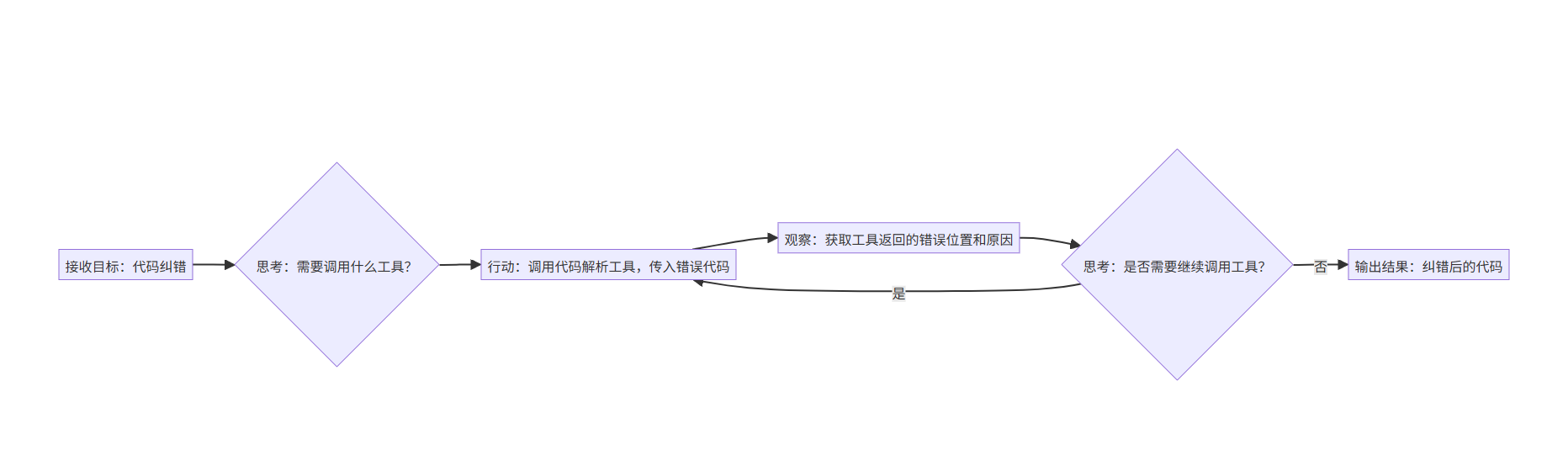 核心逻辑:针对"目标明确、无需复杂规划"的任务(如实时代码纠错、单文件解析),采用"思考→行动→观察→再思考"的短循环,快速响应反馈。