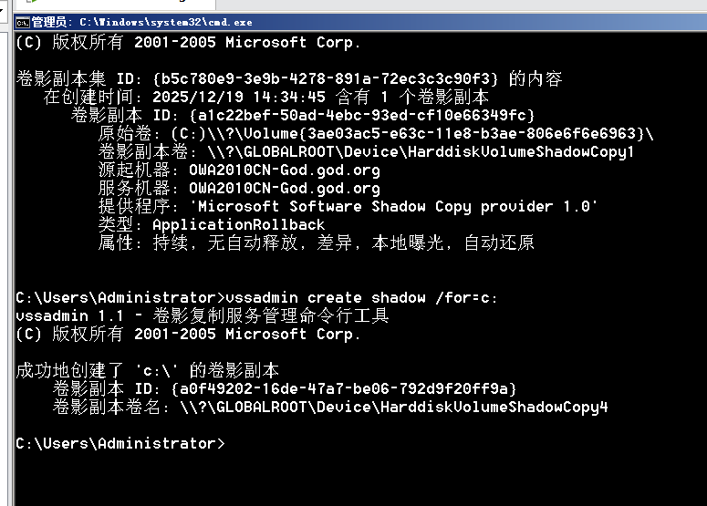 是Windows系统提供的卷影复制服务(VSS)的管理工具,域环境默认安装