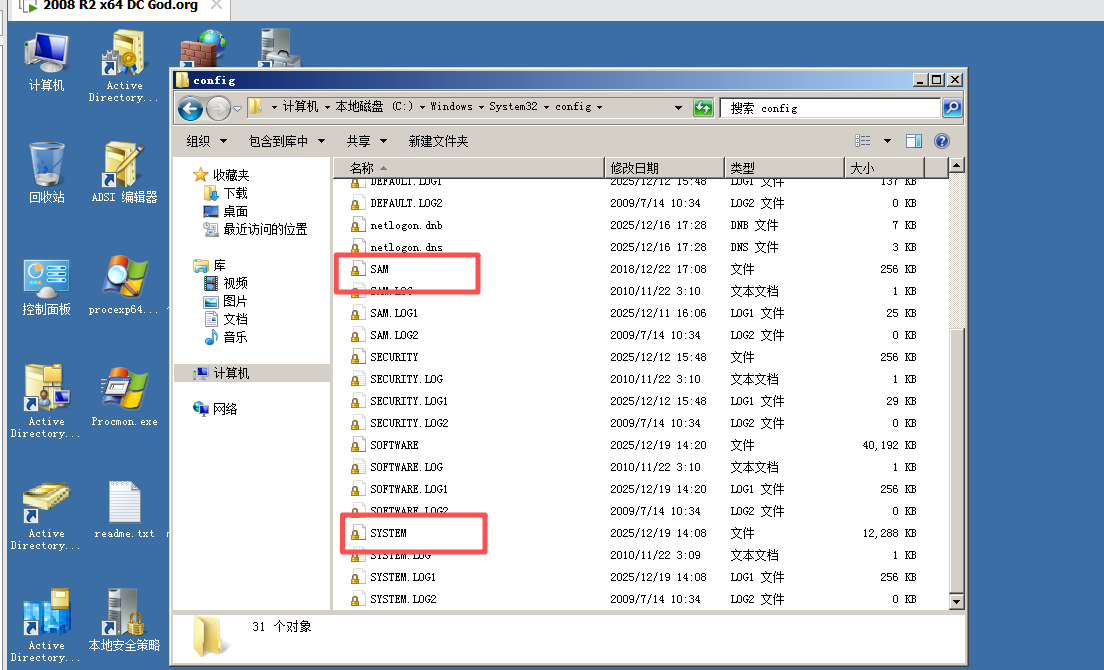 此想要破解sam文件文件与ntds.dit文件都需要拥有一个system文件