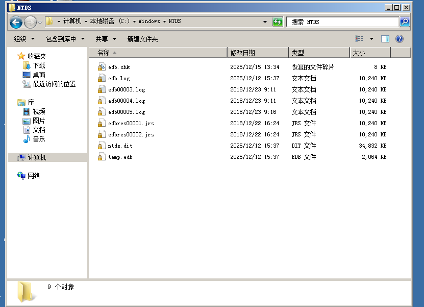 ntds.dit文件位置:%SystemRoot%\NTDS\NTDS.dit