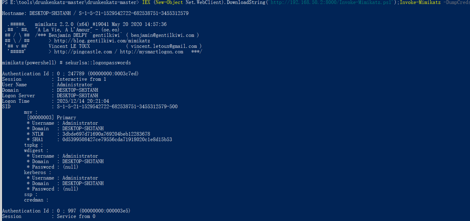 - [4.2.2.1 Powershell远程加载mimikatz脚本:](#4.2.2.1 Powershell远程加载mimikatz脚本:)