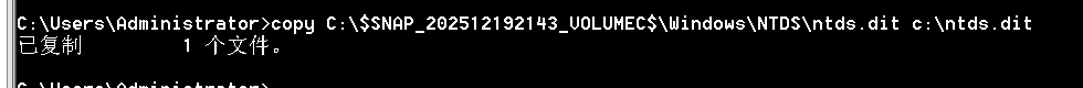 copy C:\$SNAP_202512192143_VOLUMEC$\Windows\NTDS\ntds.dit c:\ntds.dit