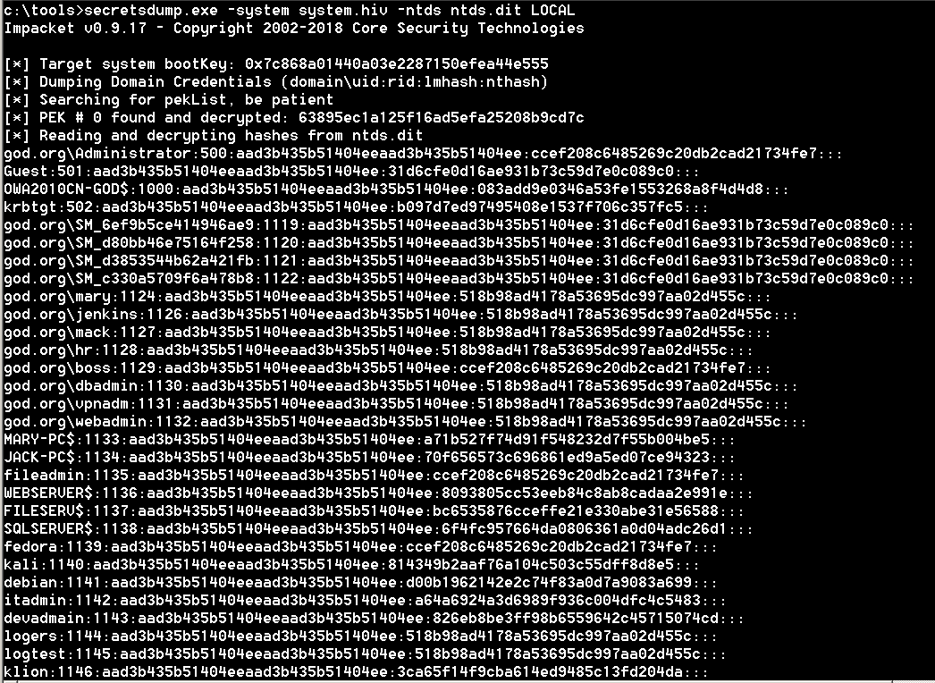 secretsdump.exe -system system.hiv -ntds ntds.dit LOCAL