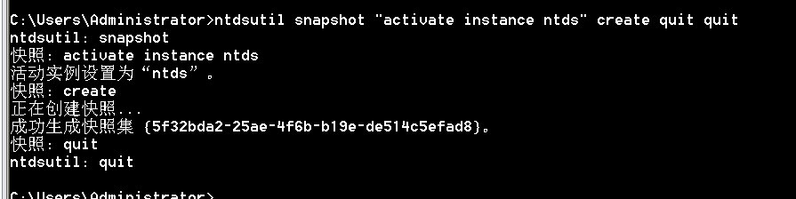 ntdsutil snapshot "activate instance ntds" create quit quit