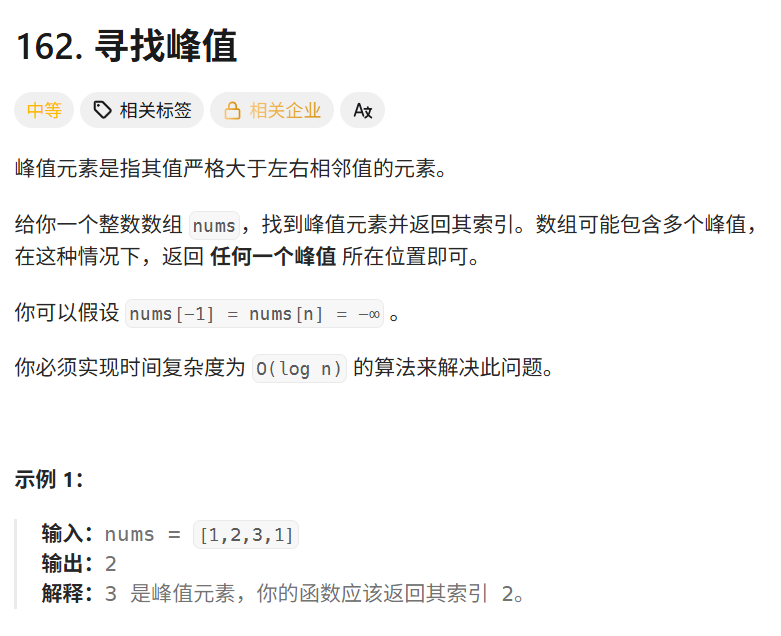 nums[mid] < nums[mid+1]** :说明 右边更高 ,你正走在"上坡"👉 山顶一定在右边(继续往右找)