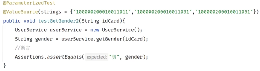JUnit单元测试的方法,可以通过参数化测试来声明方法形参 。@ParameterizedTest + @ValueSource