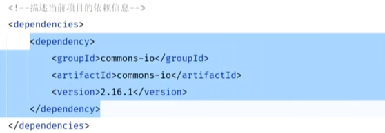 ②在**<dependencies>** 标签中使用**<dependency>引入坐标**