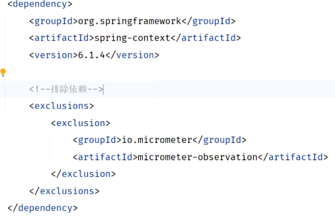 排除依赖 :指主动断开依赖的资源,被排除的资源无需指定版本。