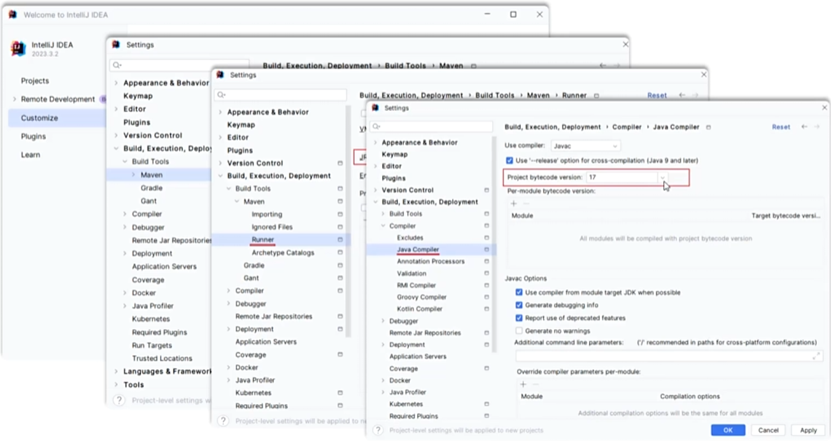 运行时自动地对项目进行编译并将编译后的字节码文件放在了target下的classes这个目录下。