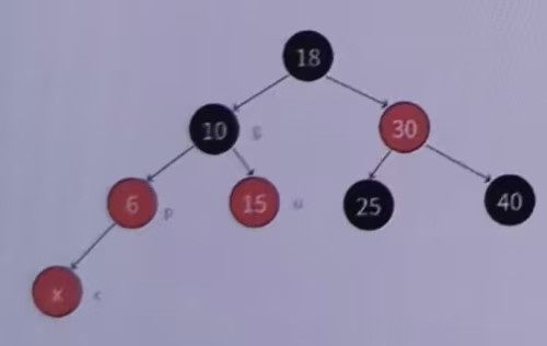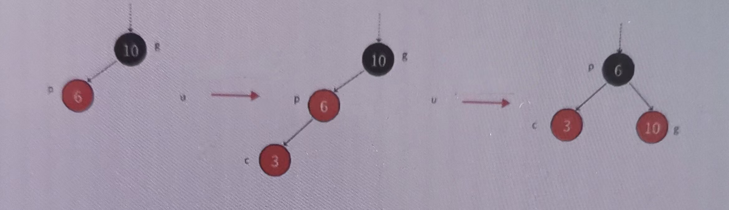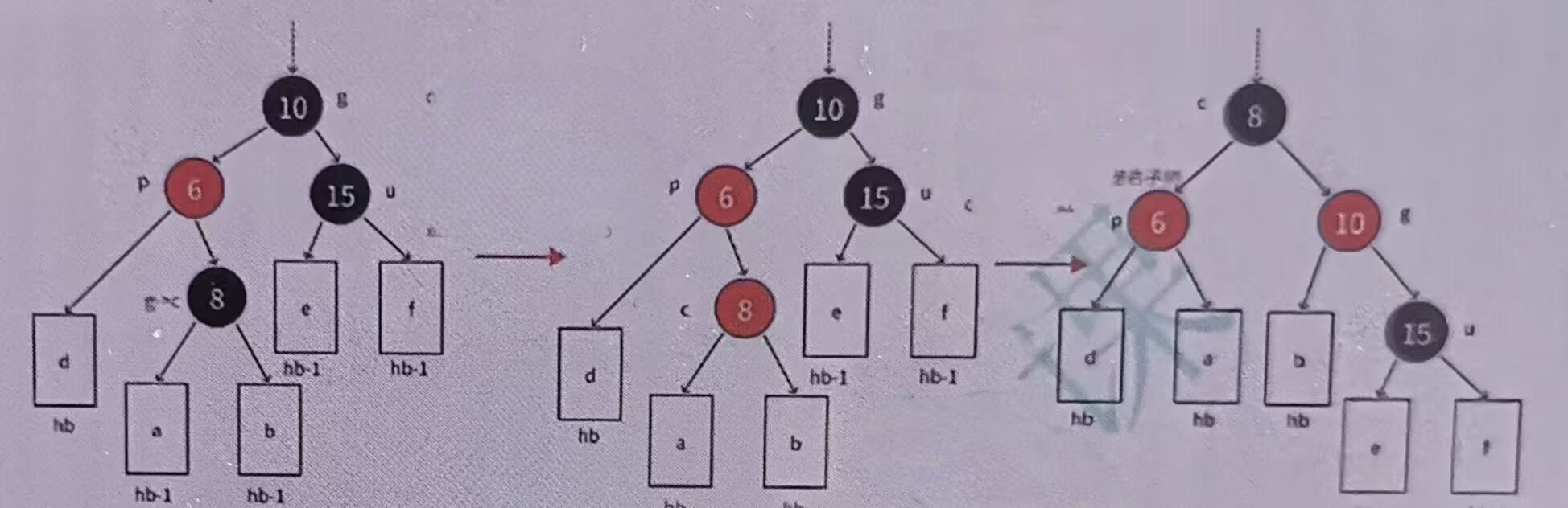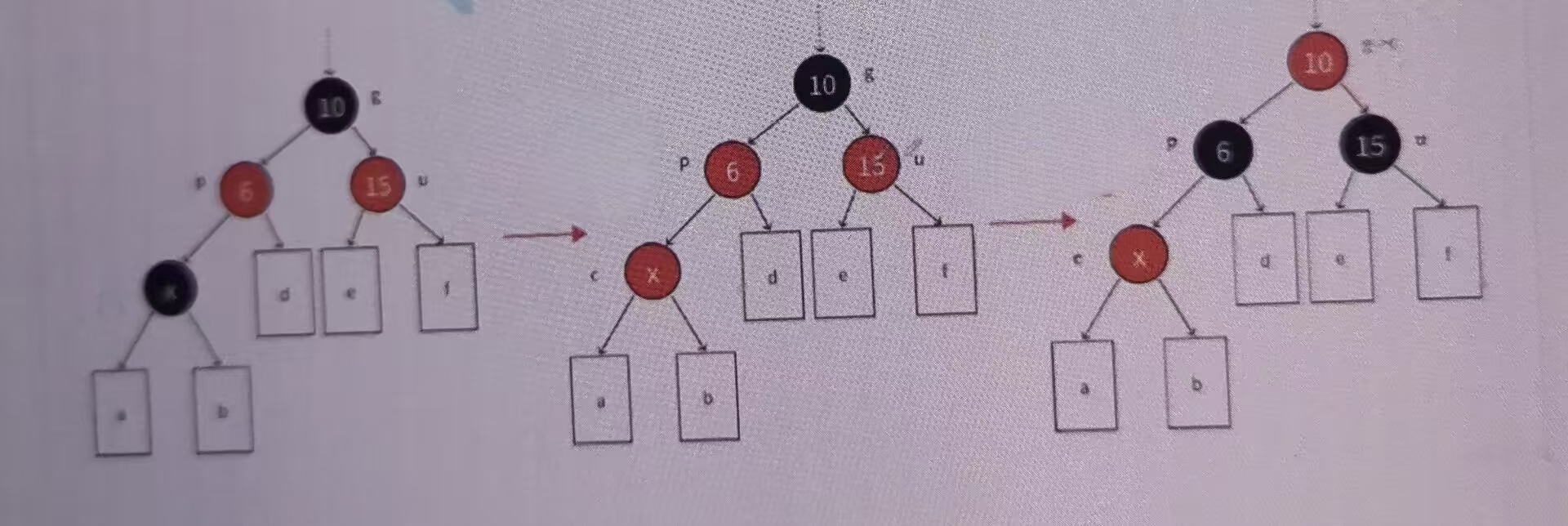 同理当p是g的右,c插入在p的左,处理方式与上面也类似,如下图所示: