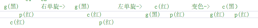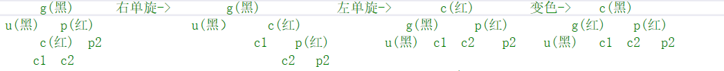 同理当p为g的右子树,c为p的左子树,也采取类似的处理方式,如下图所示: