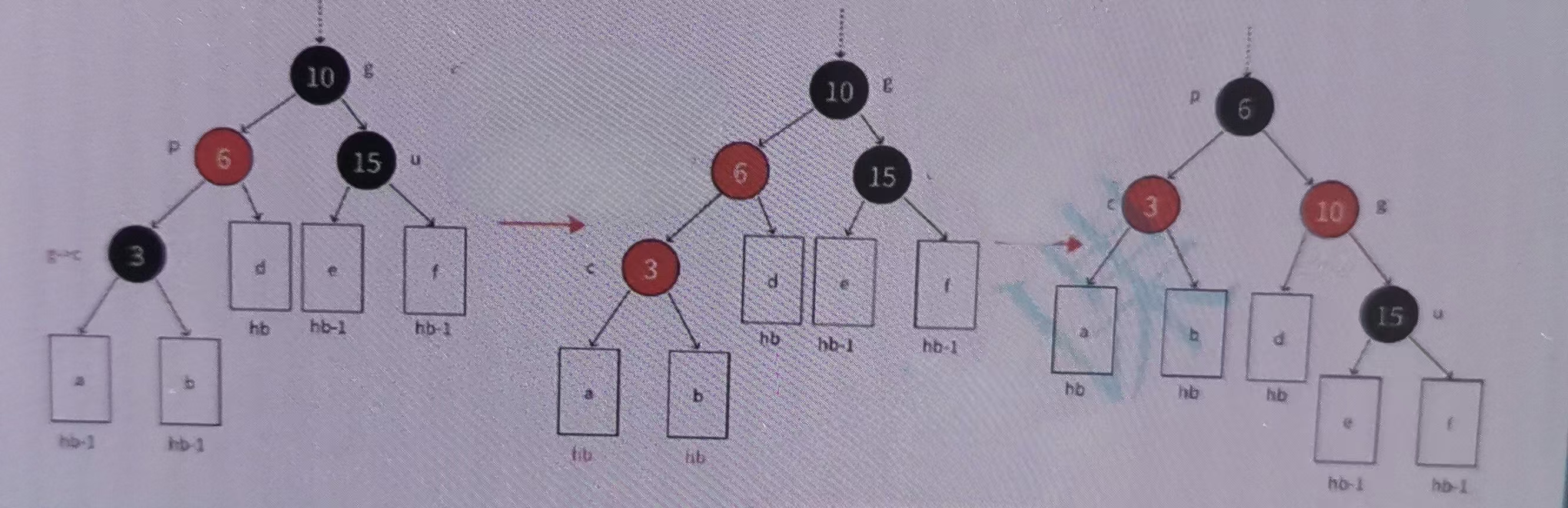 同理当p是g的右,c是p的右,也采取类似的处理方式,如下图所示: