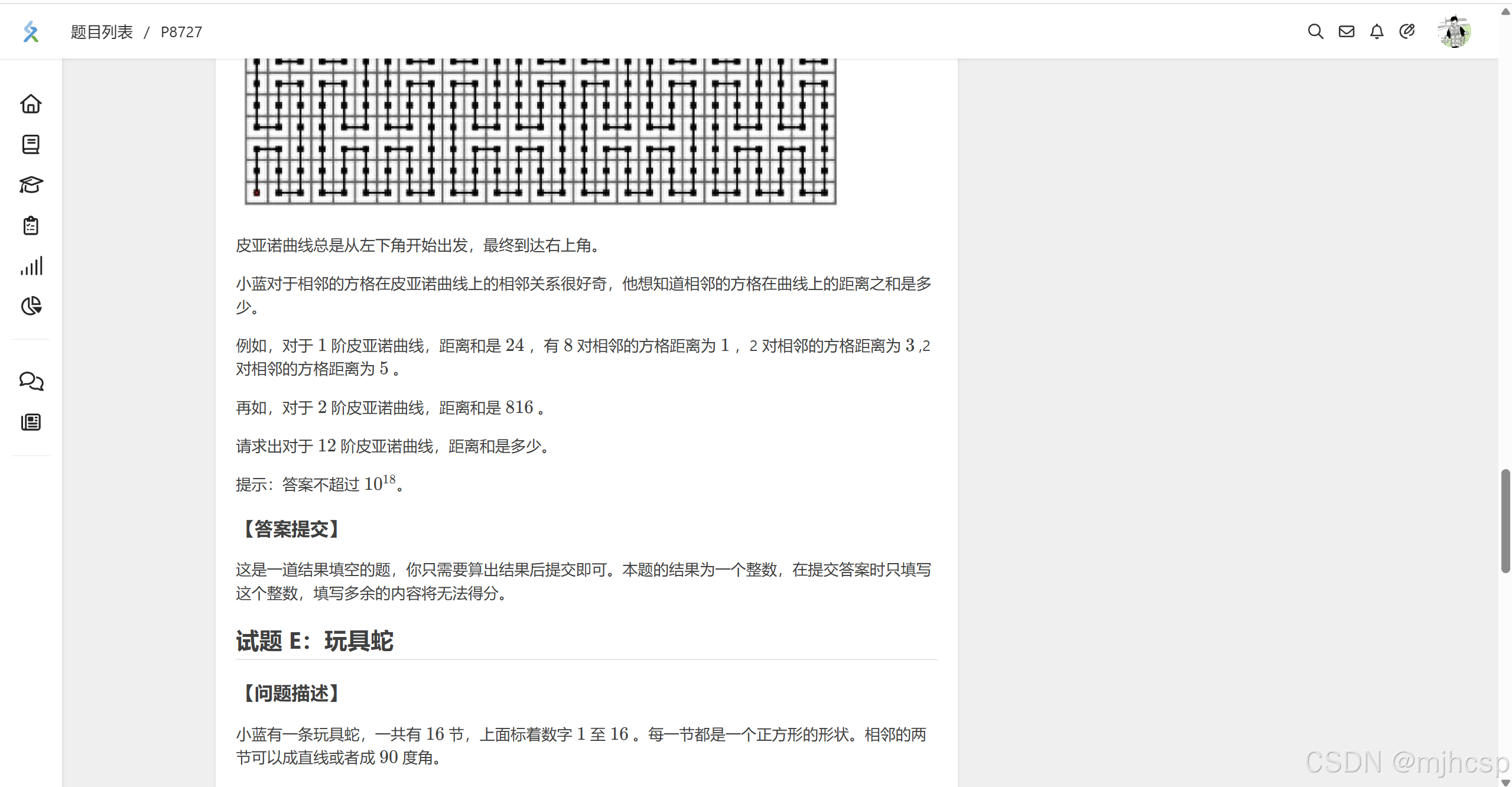 小蓝对于相邻的方格在皮亚诺曲线上的相邻关系很好奇,他想知道相邻的方格在曲线上的距离之和是多少。