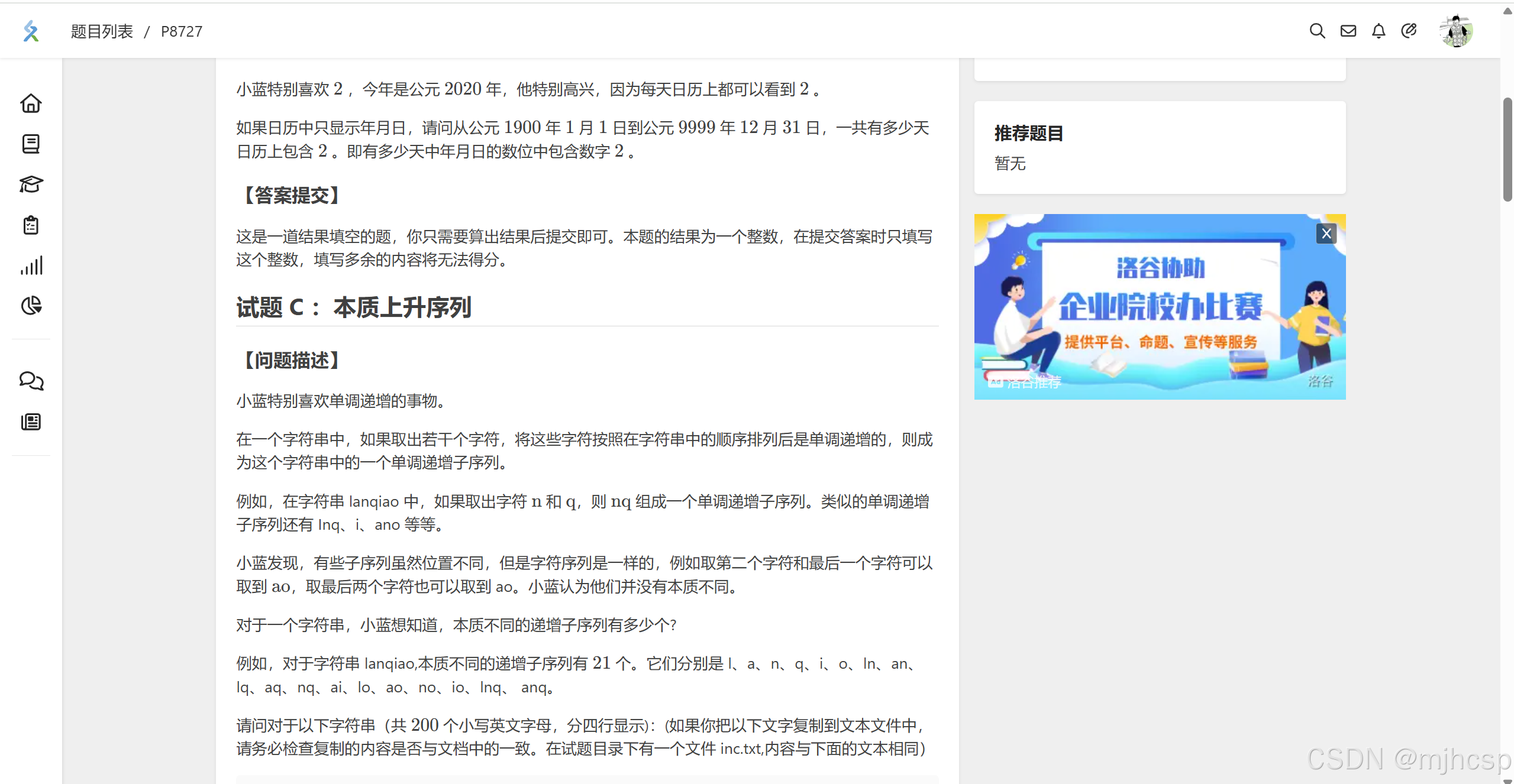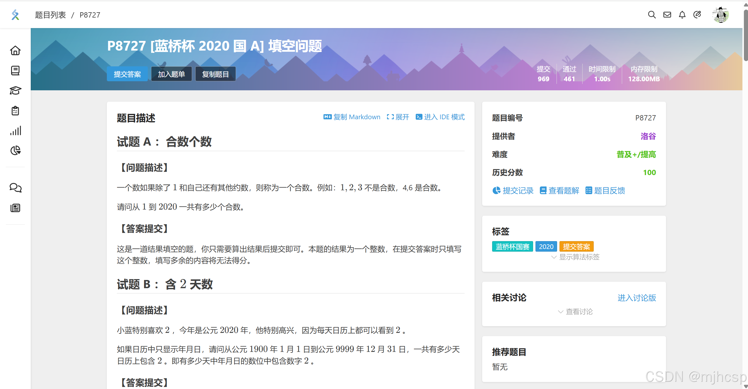 - [P8727 [蓝桥杯 2020 国 A] 填空问题](#P8727 [蓝桥杯 2020 国 A] 填空问题)