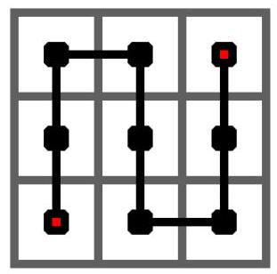 下图给出了皮亚诺曲线的 1 1 1 阶情形,它是从左下角出发,经过一个 3 × 3 3 \times 3 3×3 的方格中的每一个格子,最终到达右上角的一条曲线。