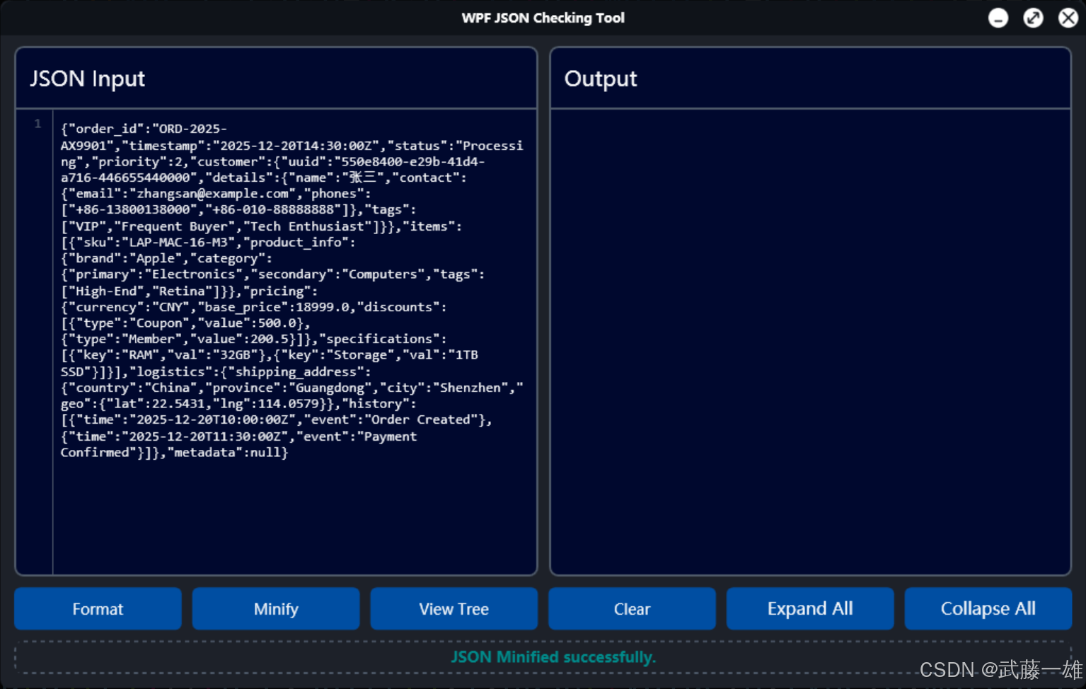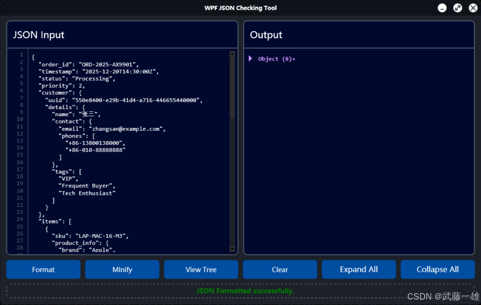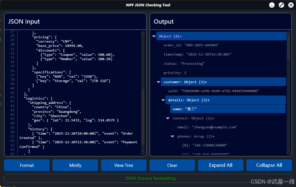 一款轻基于 WPF 桌面应用程序,旨在将复杂的 JSON 字符串转换为直观、可交互的树形结构。