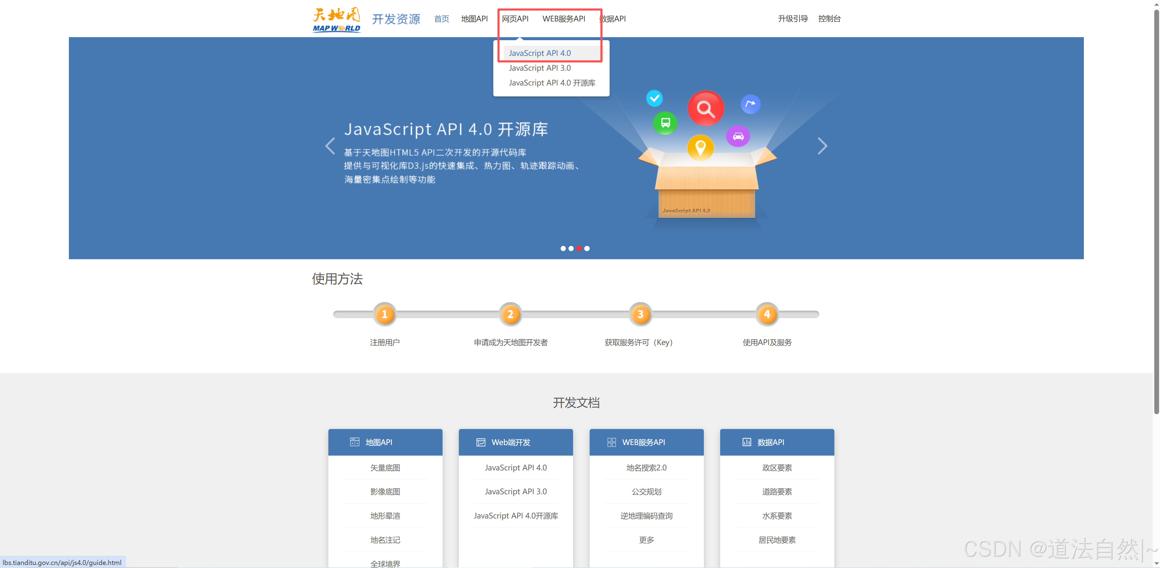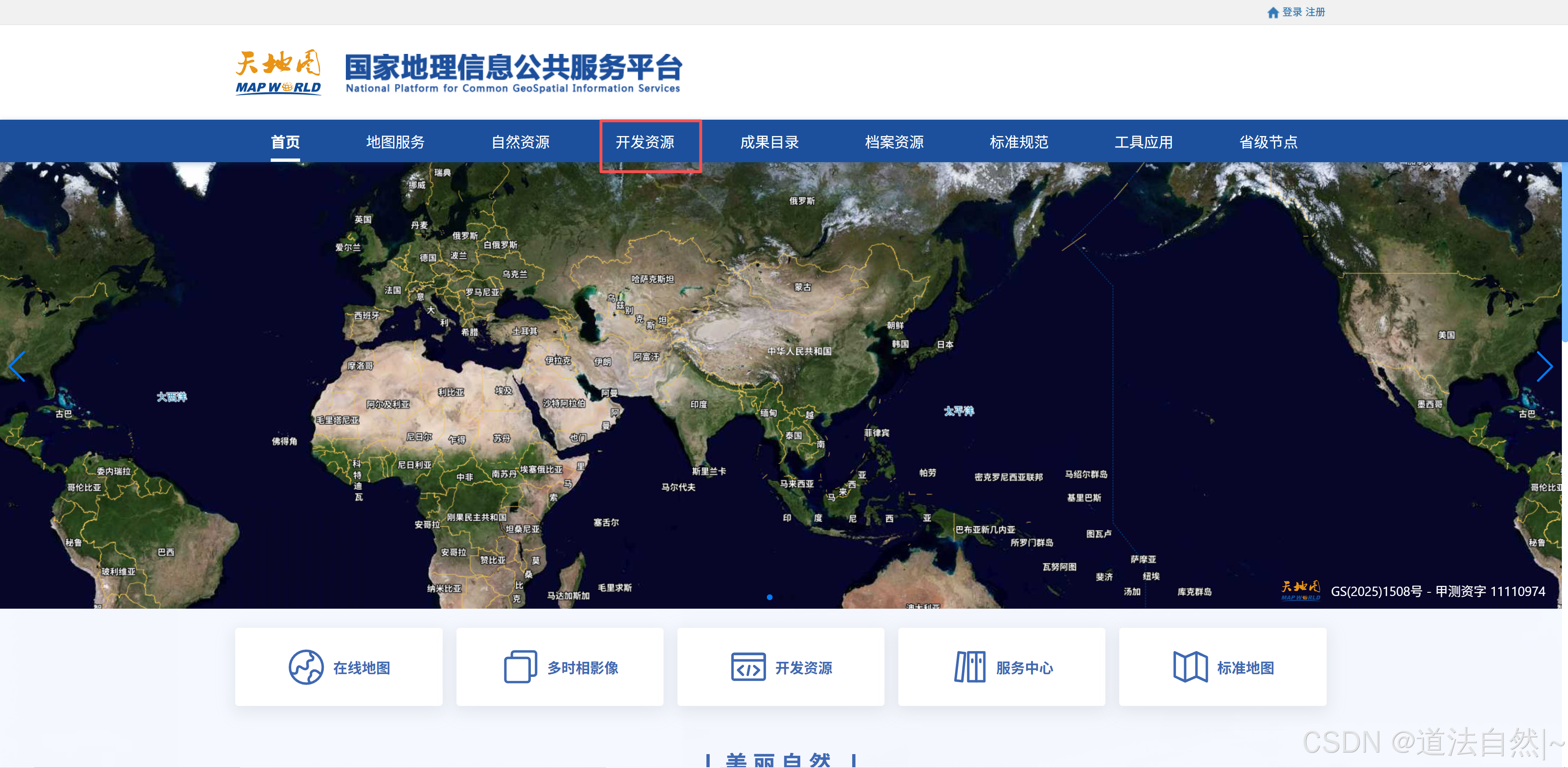 代码部分,可以在天地图网站导航栏点击"开发资源"会转到天地图API