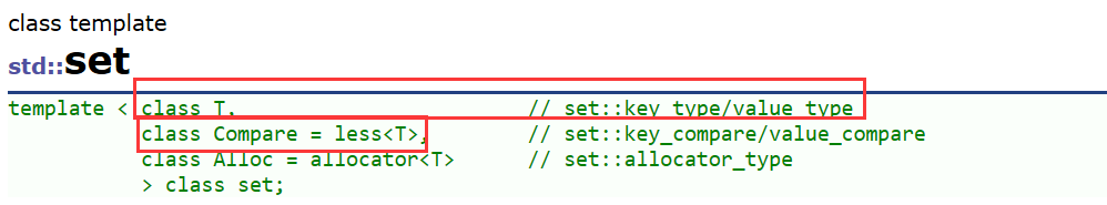 set的模板参数列表