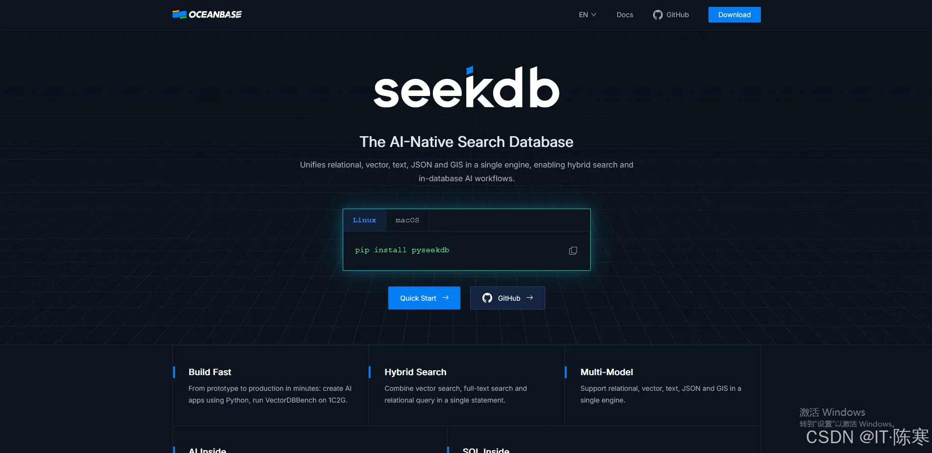 11 月 18 日,OceanBase 正式开源了其首款 AI 原生数据库 seekdb (官网:https://www.oceanbase.ai/ )。这是一个专门为AI 应用打造的新一代混合搜索引擎,能够统一处理向量、全文、多模态、结构化/半结构化数据 ,同时提供低成本、本地化、可嵌入的使用体验,seekdb仓库地址( https://github.com/oceanbase/seekdb )。