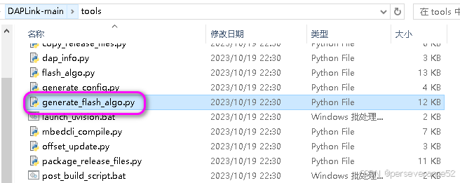 tools文件夹内,拷贝generate_flash_algo.py文件拷贝到上面新建的MCU型号文件夹内
