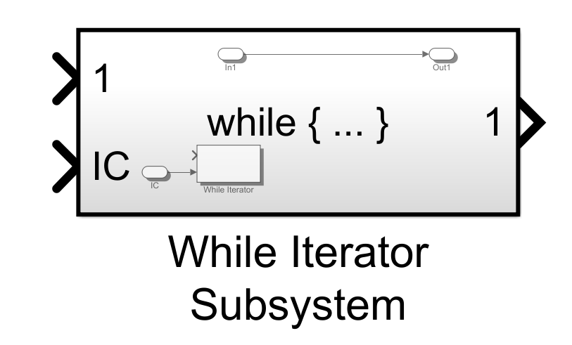 当把 While Iterator模块放置到子系统中时,在给定条件为真的情况下,While Iterator模块会在当前采样时间反复执行子系统中的内容。如果子系统不是原子子系统,那么把 While Iterator模块放置到子系统中会使该子系统自动成为原子子系统。