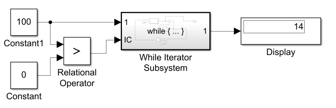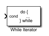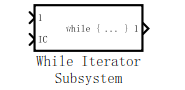 可以用Simuklink 中 Ports &. Subsystems模块库的 While子系统创建类似C语言的循环控制流语句。子系统图标如图所示。
