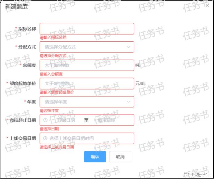 使 用 VsCode 工 具 , 在 src\views\admin\QuotaManagement\index.vue 文件中完成新建额度功能并按照下面新建额度的原型图的长度、宽度、行高、间距、文字样式、颜色等,完成新建额度页面的开发,且需要对新建额度做规则校验,校验结果如下图所示,将 Web 页面和代码截图保存(截图没有水印);