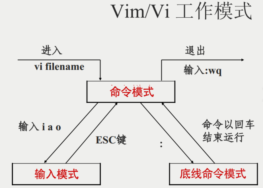 Esc键退出插入模式,返回到命令模式。 - 特点: 屏幕底部通常会显示**