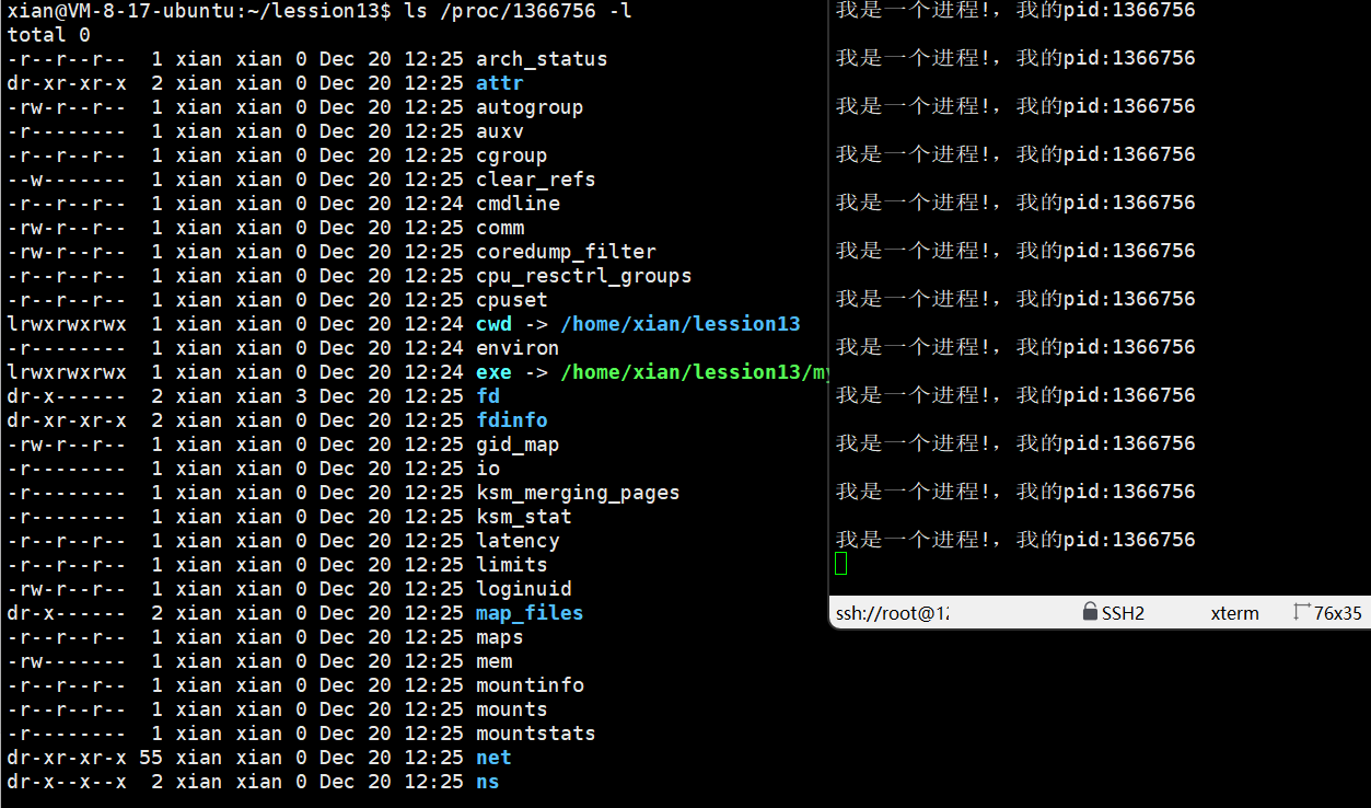 每个运行中的进程都在`/proc`下有一个以PID命名的目录: