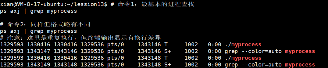 为什么第一次和第二次执行的结果不一样呢?因为执行grep命令本身也是一个进程。两次从grep进程的pid不同,第一次查看的时候shell会创建grep进程,每一个新的进程pid都不相同,调用结束后会销毁,第二次重复以上操作导致两次grep的pid不相同。