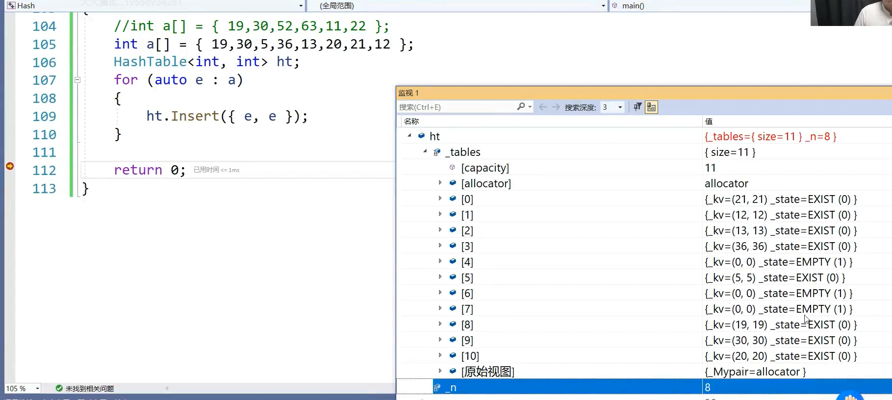 尽量让size capacity一样大,比如说这里,size和capacity都是11,