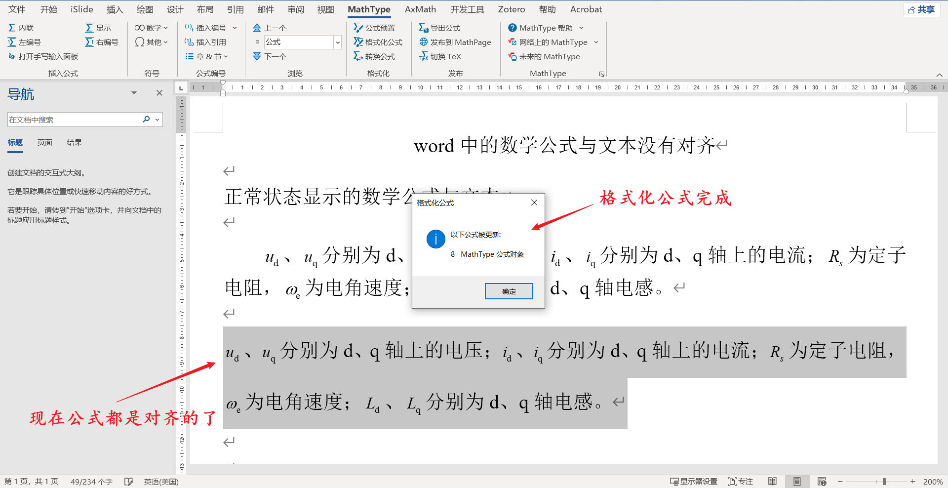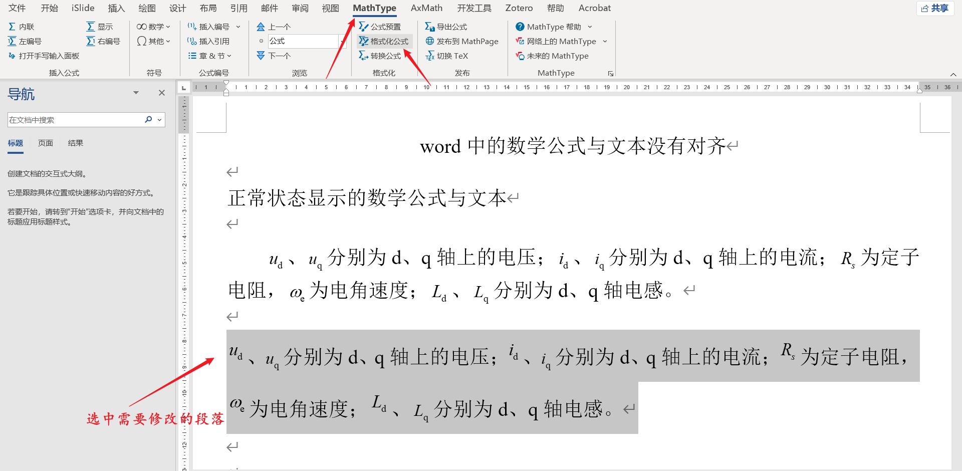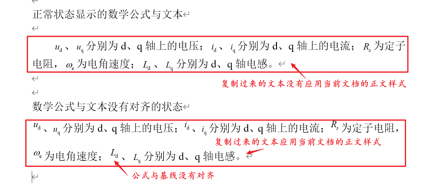 当我们从一个word文档中复制一段带有Mathtype软件写的符号标志的文本, 并且应用一个新的样式的时候, 就会带来MathType数学公式与文本对不齐的问题, 如下图所示