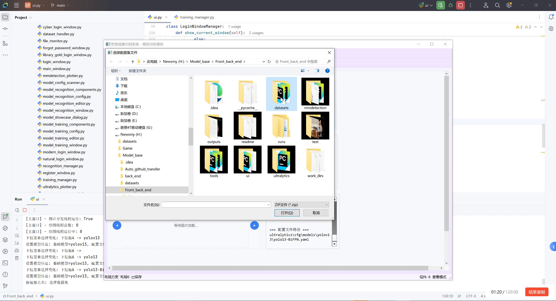 前端界面使用PyQt5开发,提供友好的用户交互体验。主要功能包括: