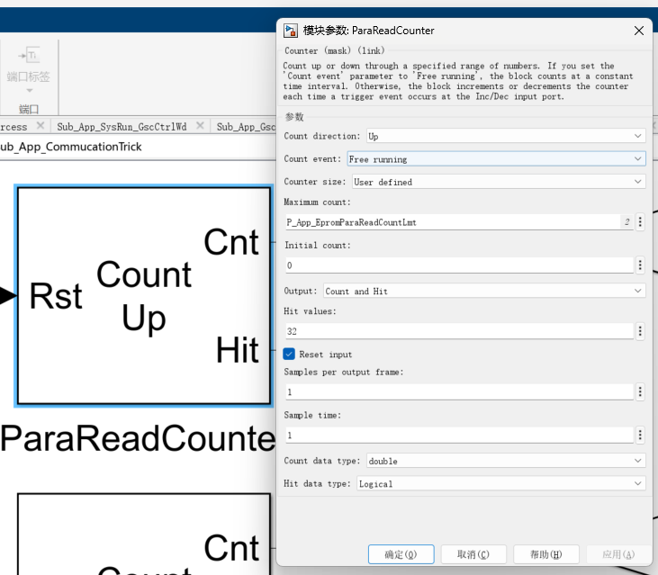 我们需要一个"时钟"来驱动Counter。在Simulink中,这通常通过设置模型的采样时间 来实现。假设模型的基础采样时间为