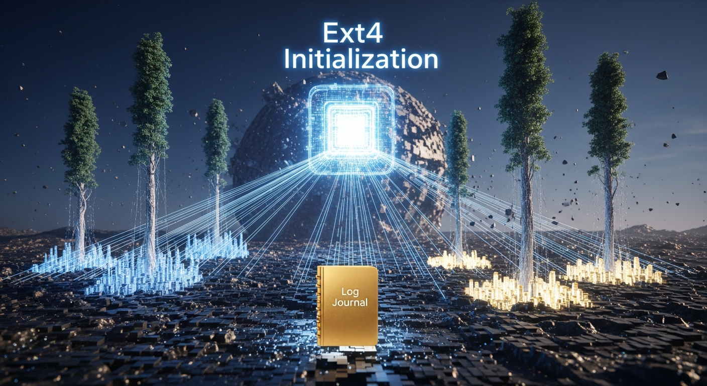 init_inodecache: 创建一个专用的 SLAB 缓存,用于高效分配ext4_inode_info结构体。这是性能的关键。ext4_init_mballoc: 初始化 ext4 的多块分配器(mballoc),这是 ext4 用于在磁盘上寻找和分配空闲数据块的核心算法。ext4_init_sysfs: 在 sysfs 中创建 ext4 相关的目录和文件,用于监控和调试。register_filesystem: 这是最后一步的关键调用,它将ext4_fs_type结构体注册到 VFS 的全局文件系统链表中,使得用户空间可以通过mount -t ext4命令来使用 ext4。
